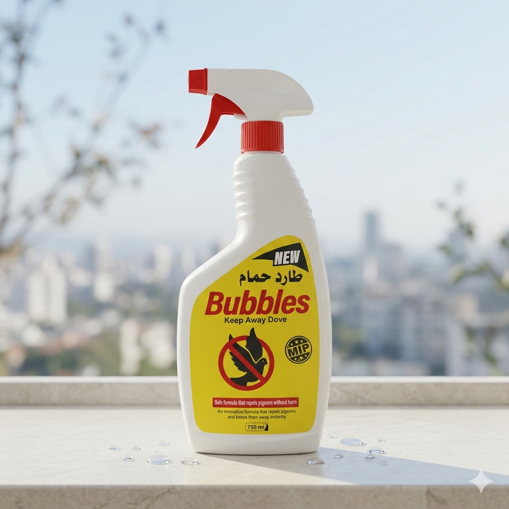 بخاخ طارد الحمام والطيور بابلز (Bubbles) – آمن وفعال – 750 مل